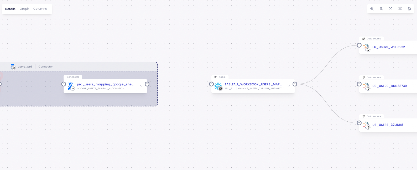 - Visualize the Entire Data Flow: Seemore maps the full lineage from source to BI, connecting Fivetran activity to downstream Snowflake and analytics workloads.